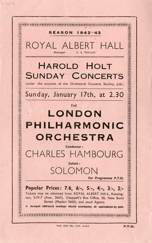 RAHE/1/1943/7Harold Holt Sunday Concerts (Season 1942-1943) - London Philharmonic Orchestra17 January 1943