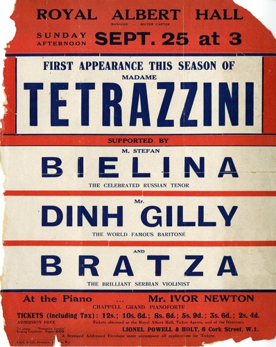 | Main Performers | Madame Tetrazzini, Stefan Bielina, Dinh Gilly - vocals, Bratza - violin |