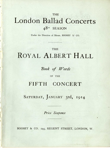 | Main Performers | Norman Williams, Lucy Nuttall, Philip Ritte, Ivor Foster, Florence Mellors, Mabel Mann, Ivor Walters, Carrie Tubb - vocals, F A Sewell - organ Percy Grainger - pianoforte, W H Squire - violoncello |