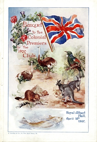 | Performance Notes | "The interior of the Albert Hall was so lavishly decorated and embellished that the building was transformed almost beyond recognition. It is not an easy thing to convert this great hall into a place suitable for dining, but the task was accomplished, and accomplished moreover, with a success which reflected great credit upon all concerned. Some 1,400 guests sat down to dinner, and a very large number of others attended subsequently to listen to the speeches, so that the hall, spacious as it is, was none to big for the occasion. For the purpose of this banquet the floor had been raised some 12 feet above the level of the arena. It was covered with a Union Jack specially planned and manufactured, and accurately laid down so as to form a faithful representation of the National Flag. This Union Jack, which contained over 20,000 square feet of material, and which is said to be by far the largest ever made, was an appropriate and symbolic carpet for a dinner given by a club which aims above all, at maintaining and strengthening the Unity of the Empire." ( The Times, April 19, 1907)