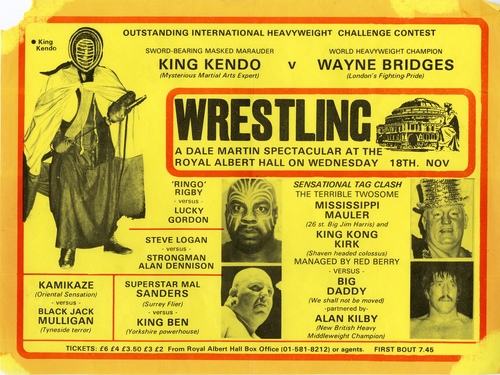 | Set List | Middleweight - 'Ringo Rigby' (Birmingham) v Lucky Gordon (Dublin), Heavyweight - Wayne Bridges (London) v King Kendo, Middleweight - Mal Sanders (Morden, Surrey) v King Ben (Silsden, Yorks), Middleweight - Steve Logan (Stirchley) v Alan Dennison (Yorkshire), Heavyweight Tag Team - 'Big Daddy', Alan Kilby v Mississippi Mauler, 'King Kong' Mal Kirk, Catchweight - Kamikaze v Jack Mulligan (Newcastle) |