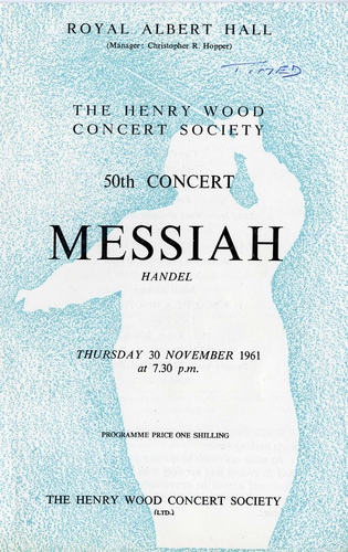 | Choirs | Henry Wood Festival Choir: Alexandra Choir, Board of Trade Choir, BBC Choral Society, Chingford United Choir, City of London Police Male Voice Choir, Epping Forest Choral Society, Harrow Choral Society, Ilford Choral Society, Kingsway Choral Society, London Orpheus Choir, Orpington and Bromley Choir, People's Palace Choral Society, Royal Choral Society, South West London Choral Society, Teddington Choral Society, Trevor Owen Singers, Wallington Philharmonic Society, Watford Philharmonic Society, Wembley Philharmonic Society, Westminster Choral Society |