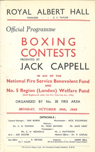 | Main Performers | Bert Gilroy (Scotland), Pat O'Connor (Ireland), Al Delaney (Canada), Al Robinson (Leeds), Ben Duffy (Royal Navy), Dave Crowley, Cyril Gallie, Dick Shields (Liverpool), Bob Ramsey (Stepney), Dave Finn (Stepney) - boxers |