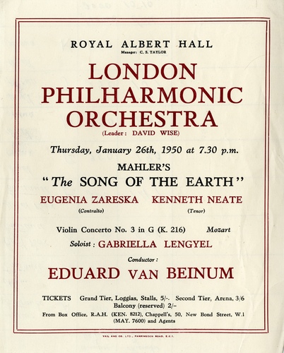 | Main Performers | Eugenia Zareska, Kenneth Neate - vocals, Gabriella Lengyel - violin |