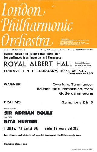 | Set List | 'Overture' from Tannhauser, Wagner, 'Immolation Scene' from Gotterdammerung, Wagner (Rita Hunter), 'Symphony No.2 in D, Op.73', Brahms |