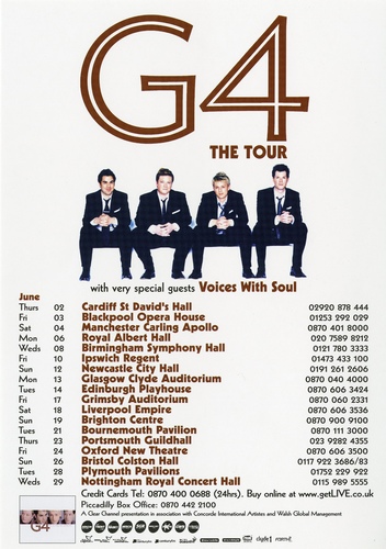 | Orchestra or Band | G4 (Jon Ansell, Ben Thapa, Matt Stiff, Mike Christie), Voices With Soul [support] (Grace Campbell, Hildia Campbell, Corene Campbell) |