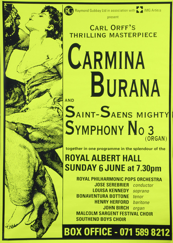 | Set List | 'Symphony No. 3 in C (Organ)', Saint-Saens (John Birch, Royal Philharmonic Pops Orchestra) INTERVAL 'Carmina Burana', Orff (Ensemble) |