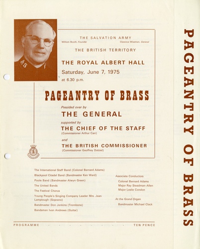 | Main Performers | The General, Commissioner Arthur Carr, Commissioner Geoffrey Dalziel - speakers
