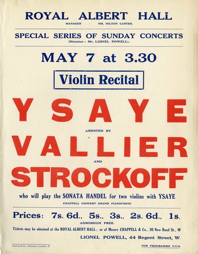 RAHE/6/1916/4First Concert of the Special Series of Sunday Concerts - Ysaye, Vallier, Strockoff7 May 1916