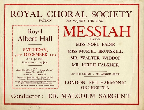 Performance TitleRoyal Choral Society (Sixty-Second Season 1932-1933) - Handel's 'Messiah'