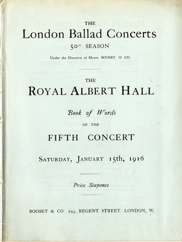 | Set List | Organ Solo (J Hurst Bannister) Song: 'The Garden of Your heart', Francis Dorel (Topliss Green), Waltz Song: 'Ah Che Assorta', Venzano (Flora Woodman), Old English Air: 'Drink To Me Only', arr. Harper Kearton (The Westminster Singers), 'Ships That Pass In The Night', T Wilkinson Stephenson (Phyllis Lett), 'For Love of You', Ernest Newton (Phyllis Lett), Violoncello Soli: 'Largo', Chopin (W H Squire), 'Passe-Pied', Gillet (W H Squire), 'Break O' Day', Wilfrid Sanderson (Carrie Tubb), New Song: 'Polly', W H Squire (Harry Dearth), 'Danny Boy', arr. F E Weatherly (Lucy Nuttall), 'From The Land of the Sky-Blue Water', C W Cadman (Ivor Foster), 'An Old-Style Rhyme', H E Hunt (Ivor Foster), 'Do You Remember?', Haydn Wood (Alfred Heather), 'Now Sleeps The Crimson Petal' (Seven Elizabethan Lyrics), Roger Quilter (Ida Kiddier), 'Fair House of Joy' (Seven Elizabethan Lyrics), Roger Quilter (Ida Kiddier), Duet: 'The Gendarmes' (Genevieve de Brabant), Offenbach (Ivor Foster, Harry Dearth) INTERVAL Humorous Part-Song: 'The Cat Show', Seymour Smith (The Westminster Singers), 'Far Across the Desert Sands', (A Lover in Damascus), Amy Woodforde-Finden (Topliss Green) 'How Many a Lonely Caravan', (A Lover in Damascus), Amy Woodforde-Finden (Topliss Green) 'Allah Be With Us', (A Lover in Damascus), Amy Woodforde-Finden (Topliss Green) 'One Morning Very Early', Wilfrid Sanderosn (Flora Woodman), New Song: 'The Pearl Cross', Charles Marshall (Phyllis Lett, Charles Marshall), Violoncello Soli: 'Minuet', Gluck (W H Squire), 'Rondo', Boccherini (W H Squire), 'What Shall I Say?', Gerald Grayling (Carrie Tubb), 'Love's Greeting', Gerald Grayling (Carrie Tubb), 'Captain Mac', Wilfrid Sanderson (Harry Dearth), 'When You Come Home', W H Squire (Lucy Nuttall), 'The Melody of Home', T Wilkinson Stephenson (Ivor Foster), 'When Shadows Gather', Charles Marshall (Alfred Heather), 'I Know Where I'm Goin' (Irish Country Songs), Herbert Hughes (Ida Kiddier), Part Song: 'The Long Day Closes', Arthur Sullivan (The Westminster Singers) |