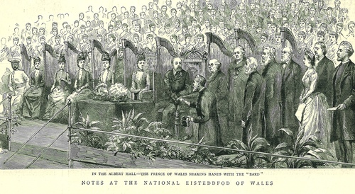 "The Nationa Esiteddfod of Wales was opened on Tuesday at the Albert Hall, after the Druidic Gorsedd in Hyde Park. A letter was read from Mr Gladstone, expresing his interest in the celebration, and stating that a cold had made it impossible for him to address the meeting. Lord Mostyn presided, and at the close of his address the musical competitions and the curious pennillion singing commenced. Eleven choirs competed for a prize of £50, and the Rhondda Glee Society and the Huddersfield Glee Society being adjudged equal, the prize was divided. In the evening a concert entirely devoted to Welsh music attracted a large audience. An inaugural meeting and conversazione was held in the holborn Townhall on Monday night under the auspices of the Cymmrodorion Section of the Eisteddfod."