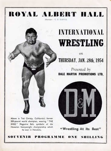 | Set List | Anglo-Indian Middleweight Contest - Arjit Singh (Lahore) v Alan Colbeck (Wakefield, Yorks), Welterweight Contest - Mick McManus (New Cross) v Tony Lawrence (Scotland), Catchweight Challenge Match (163lbs) - Jack Dempsey (Wigan) v Chris Londos (Cyprus), Anglo-American Heavyweight Contest - Ted Christy (California) v Ernie Baldwin (Wakefield), International Heavyweight Attraction - Jules Delmee (Paris) v Mike Marino (Milan), Middleweight Wrestling Classic - Bert Royal (Bolton) v Ken Joyce (Rushden) |