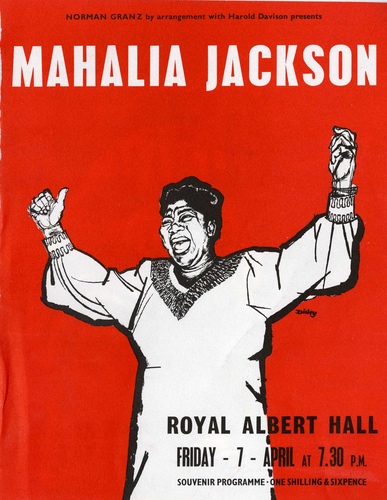 | Performance Notes | Mahalia Jackson's diary entry for 7 April 1961; "Got to Albert Hall, on Kensington Road, at 5 this evening. It looks like it was built before Jesus came - it has that old reverent look about it. We went inside and the first thing I inquired about was the mike, for I thought the acoustics were worse than they actually were. We got the sound system straightened out and the men were very kind to me there. The head man recognises me from 1952 when I was awfully sick and weighed only 140 pounds. Now I'm 240 pounds - but he thinks I look well. The manager, Mr Christopher Hopper, also remembered me from the last visit. There was a warm and pleasant atmosphere and it was memorable and sad, too. It was like coming back from the dead, a chance to sing in London again, the greatest city in the greatest Kingdom. Finally, I went back to the dressing room and Dave came in and told me they were lining up in the streets getting tickets, that the house was filling up and that Princess Alexandria, daughter of the Duchess of Kent, was there. I began to cry and thank God because my mind went back almost nine years and I remembered what a sick woman I was then. Admist all the joy and thanking God I got a most discourteous letter from a critic. Mildred thought it would upset me but nothing could upset me because I had prayed and the Lord had heard my prayers. I started my program with my regular song, My Home Over There. I always like to sing that because it reminds me of Paul when he said "I've fought a good fight and I kept my faith." The song goes: "When my work is done, set the setting sun, I'm going to my home over there. I shall walk the golden stairs and be free from every care when I reach my home over there." That's why it reminds me of Paul. I believe that one day I shall do that. The first time I was at the Albert Hall it was cold as ice but there was a great difference in the English people this time because there was a great difference in me. I couldn't say who was there, how many saints or sinners, because there was one happy medium. They carried on so loud that they called the police to get me through the crowd. When I got back to my hotel, I opened my Bible and read and got on my knees and thanksed God for his blessing. My body was so exhausted that I didn't make it a long prayer, but I made it sincere." (Ebony magazine, October 1961, page 45) |