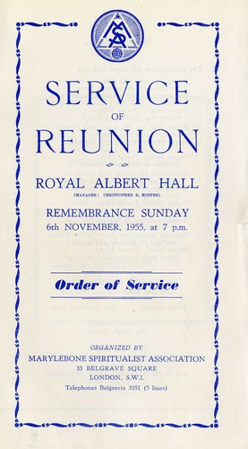 Lord Dowding's address: "'Until we have peace in the hearts of men, there cannot be world peace,' he said. 'The nations of the world today are living on the edge of a volcano that has erupted twice in my lifetime.' ''It is held in quiescence by the fear of terrible weapons. The world believes we have peace - as though it could be imposed on humanity from outside, in this manner.' Dowding began his speach by stating that it was nearly 10 years ago that he first spoke at the Albert Hall. ... 'Is it true that Spiritualists and occultists are the prophets of to-day? Certainly it is hard to think of any others in contact with that invisible brotherhood who are dedicated to bringing the light to humanity,' averred the great war leader. Why should not God do this through angels? Why through man in the flesh? He gave two answers. He said that the salvation of man must come through man. We could not expect to be spoon-fed. ..."