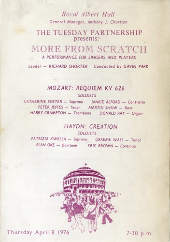 | Set List | 'Requiem KV 626', Mozart (Catherine Foster, Janice Alford, Peter Jeffes, Martin Shaw, Harry Crampton, Donald Ray), 'Creation', Haydn (Patrizia Kwella, Graeme Wall, Alan Oke, Eric Brown) |