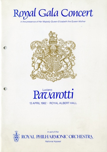 | Performance Notes | Although Luciano Pavorotti had first appeared at the Hall in 1964 as one of the singers in a BBC Henry Wood Proms concert, this was he's Royal Albert Hall headline debut. He appeared with the Royal Philharmonic Orchestra, conducted by Kurt Herbert Adler, in aid of The Royal Philharmonic Orchestra National Appeal. More than £100,000 was raised with which the RPO launched its £1 million national appeal.