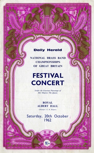 | Set List | 'Fanfare for Brass Band and Organ', Francis Cameron, 'God Save the Queen', (National Anthem), 'Marche Militaire No.1', Schubert (Massed Bands), 'Minuet', from String Quartet Op.2, No.6, Boccherini, arr. Frank Wright (Massed Bands), 'French Comedy Overture', Keler-Bela, arr. Frank Wright (Massed Bands), 'Les Preludes', Liszt (Massed Bands), 'Trombone Quartet' (Barry Ostlere, Shepherd Trombone Quartet), 'Processional March', Adam Carse (Massed Bands), 'Finlandia', Sibelius (Massed Bands) INTERVAL 'Kenilworth - March', Bliss (Massed Bands), 'L'Italiana In Algeri Overture', Rossini (Massed Bands), 'Two Spanish Dances, Op.12, Nos. 1 and 2', Moszkowski, arr. S Myers (Massed Bands), 'Flotsam and Jetsam', Barsotti (Colin Waggott, CWS (Manchester) Band), 'Where E'er You Walk' from Semele, Handel (Euphoniums), 'Themes from Symphony No.5', Tchaikovsky, arr. Eric Ball (Massed Bands), 'Gold and Silver Waltz', Lehar (Massed Bands), 'Pomp and Circumstance March No.1', Elgar, arr. Ord Hume (Massed Bands), 'Land of Hope and Glory', Elgar, arr. Ord Hume (Massed Bands) |