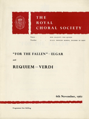 Performance TitleRoyal Choral Society (Ninety-Third Season 1962-1963) - Verdi's 'Requiem' and Elgar's 'For the Fallen'