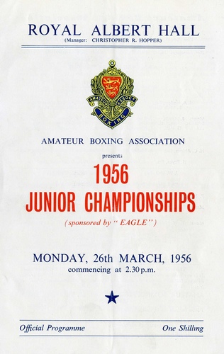 | Main Performers | B Bissmier (West Ham ABC), D B Wignall (Hothersall Hall YC), A/T/ M J Platt (ISBA), B Collinson (NABC), C Jimenez (Four Feathers ABC), M E Clarke (Radford Social ABC), Cadet L Byrne (ATC), N Lebby (NABC), J Wood (Rotax ABC), T Owen (Warley ABC), Boy C.Mapp (ISBA), D Bulpitt (Southampton BC), R Mitchell (West Ham ABC), K M Ward (Sharston Comm Assn), Boy R Robertson (ISBA), P Cate (Chichester BC), A S Hagland (The Times ABC), B Gale (Montague Burton ABC), Ordinary W George (SCC), J Fitzpatrick (NABC), G J Murdoch (Eltham and District ABC), J Sandlan (Flying Angel ABC), Cadet G.Kitchen (ACF), H Kramer (NABC), C Maquire (Croydon ABC), T O Marshall (Mitchells and Butlers ABC), Lance-Corporal H Harrison (ACF), G Benning (Patchway BC), J Dennis (Eltham and Dist ABC), J Evans (Charlemont EI BC), A/A A Holt (ISBA), B Brisland (Southampton ABC), H Humphrys (West Ham ABC), M Burton (Mitchells and Butlers ABC), Cadet A Maclean (ATC), A Robson (NABC), D Whittaker (Battersea ABC), F Dobson (Lily Lane ABC), A/A T G Fry (ISBA), E M Osborne (NABC), J C Devitt (The Times ABC), T Edwards (Smethick ABC), Cadet B Howlett (ACF), K Field (NABC), D O'Brien (Marylebone ABC), S McDonnell (Standard Motors ABC, Cadet R Maddison (ACF), B Collins (ES and A Robinsons BC), G D Fordham (Marylebone ABC), W.Gale (Montague Burton ABC), Cadet J Greenhalgh (ACF), C Frazer (NABC), G F Cottle (Lynn ABC), P Cassidy (Liverpool Star ABC), Cadet R Warner (ACF), P.Morgan (NABC), R Martinson (West Ham ABC), J Lloyd (Caryl Gardens Boys Club), Cadet RWilkes (ACF), R Peachy (Mid-Sussex), T C Sullivan (Battersea ABC), M Worthington (Nantwich ABC), A/T R Memott (ISBA), T Loscombe (NABC), A Kennedy (Ilford ABC), M E Woolams (Warley ABC), Cadet B Gatward (ACF), R Hinton (NABC) |
