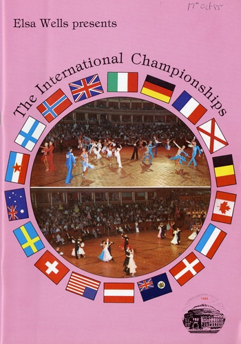 International Senior Modern Championship contestants (Waltz, Tango, Slow Foxtrot, Quickstep, Viennese Waltz): Yan & Gina Sepp (Netherlands), Alan & Jill Rawlings, Lem & Els Keijzer (Netherlands), Keith & Marilyn Cattel, David & Marjorie Da Costa , Fernand & Jenny Rossey (Belgium), John & Jean Craven, Joe & Val French, David & Pat Roberts, David & Yvonne Osborn, Esko & Aino Numminen (Finland), Jim & Cathy Turkington, Norbert & Anita Willems (Germany), David & Mary Corfield, Bo & Marita Hagman (Finland), Maurice & Patricia Ashton, Harry & Jeannie Ferris, John & Jeanette Whatmore, Ray & Joan Ashley, Peter & Joke Van Eyk (Netherlands), Leslie & Jackie Taplin, Andre & Emmy Laureys (Belgium), Percy & Yvonne Minton, Gordon Swainston & Maureen Kindred, Dennis & June Laughton, Rolf & Peggy Nyberg (Finland), Mr. & Mrs. Descoux (France), Jan & Jannie Tellier (Netherlands), Bernard & Ursula Delair, John & Gloria Gordon, Dietrich Kampf & Brigitte Neudorf (Germany), Richard & Joyce Gorsuch, John & Eileen Duhig , Joe & Barbara Sanderson, Paul & Eileen Taylor, Alan Margetts & Thelma Brown, Toru Ogane & Yuki Matsuzawa (Japan), Colin & Muriel Barnes, Colin & Janet Mansbridge