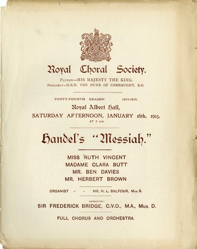 Royal Choral Society (Forty-Fourth Season 1914-1915) - Handel's 'Messiah'