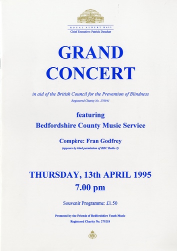 | Orchestra or Band | Bedfordshire County Youth Orchestra, Bedfordshire County Youth Second Orchestra, Bedfordshire County Youth Third Orchestra, Bedfordshire County Youth Fourth Orchestra, Bedfordshire County Youth Concert Band, Bedfordshire County Youth Second Concert Band