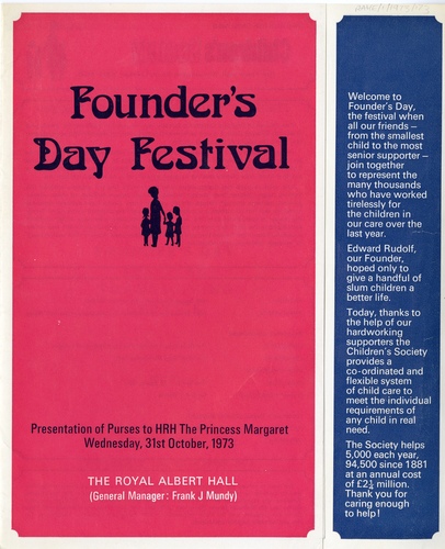 | Main Performers | HRH The Princess Margaret, Lord Bishop of London, Rev. Austen Williams, Judi Rudolf, Gareth Rudolf, Lord Bishop of Birmingham, Hon. Mark Wyndham - speakers, Peter Blunt - organ |