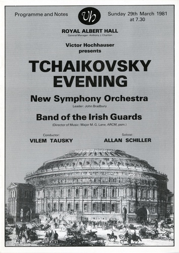 | Set List | 'Sleeping Beauty Waltz', Tchaikovsky (New Symphony Orchestra), 'Swan Lake Suite', Tchaikovsky (New Symphony Orchestra), 'Piano Concerto No.1 in B Flat Minor, Op.23', Tchaikovsky (Allan Schiller, New Symphony Orchestra) INTERVAL 'Nutcracker Suite', Tchaikovsky (New Symphony Orchestra), '1812 Overture, Op.49', Tchaikovsky (New Symphony Orchestra, Band of the Irish Guards) |