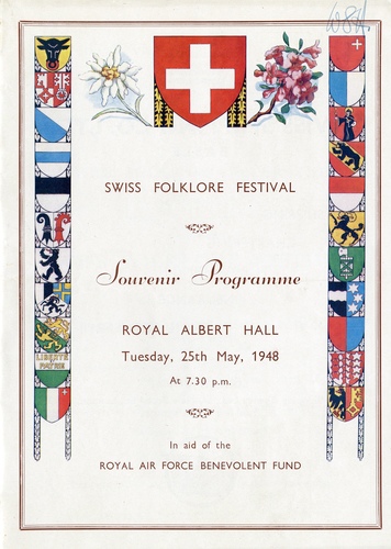 | Set List | 'Fantasia On Swiss Melodies' (By The Lake of The Four Cantons), arr. Winter (Central Band of The Royal Air Force), 'Basle Festival Marches', Hans Huber Hermann Suter, arr. Dr F R Berger, arr. Karl Schell (Drums and Fifes of Basle) 'Wolfbedeler' (Free Yodelling), Krenger Schmalz (Yodler Choir from Stans), 'Roti Baggli' (Rosy Cheeks), Krenger Schmalz (Yodler Choir from Stans), 'Jetzt Wird's Luschtig' (Now Let's Be Gay), Kasi Geiser (Rigi Boys Peasant Orchestra of Vitznau), 'Wenn Ein Landler Ertont' (When a Country Dance Strikes Up), Kasi Geiser (Rigi Boys Peasant Orchestra of Vitznau), 'Bargblueme' (Mountain Flower), (Trio of Alphorn Blowers from Hergiswil in Nidwalden), 'In De Schwizerbarge' (In The Swiss Mountains), Trio of Alphorn Blowers from Hergiswil in Nidwalden), 'Old Swiss Marches' (Drums and Fifes of Basle), 'Alle Wander', Leuthold (Beckenried Flag Swingers of Hergiswil), 'Ennet Mooser' (Free Yodelling), H W Schneller (Yodler Choir from Stans) 'Jodele-Bodele', H W Schneller (Yodler Choir from Stans), 'Retreat', arr. Karl Thoms (Drums and Fifes of Basle), 'Imperial Echoes March', Safroni (Central Band of The Royal Air Force), 'Folk Song Suite', Vaughan Williams (Central Band of The Royal Air Force), 'Windschdi' (Winston), Dr F R Berger (Drums and Fifes of Basle), 'Z Basel Am Mym Rhi' (Basle On The Rhine), Karl Roth (Drums and Fifes of Basle), 'Arabi' (Drums and Fifes of Basle), 'Kasi Mach En Urchige' (Landler), arr. Kasi Geiser (Rigi Boys Peasant Orchestra of Vitznau), 'Ob Dosseler' (Free Yodelling), Krenger-Schmalz (Yodler Choir from Stans), 'Geissbuhler Trutz-Liedli', Krenger-Schmalz, (Yodler Choir from Stans), 'Frybourger Kuhreigen' (Fribourg Cow-Herds' Dance) (Trio of Alphorn Blowers from Hergiswil in Nidwalden), 'D'Sunne Chunt' (Sunrise), (Trio of Alphorn Blowers from Hergiswil in Nidwalden), 'Querpfyffer', Karl Roth, (Yodler Choir From Stans), 'Vogeli-Schottisch', arr. Leuthold (Yodler Choir From Stans), 'Appenzeller' (Free Yodelling) (Yodler Choir From Stans), 'Old Cow-Herd's Song', Krenger-Schmalz (Yodler Choir From Stans), Swiss Psalm 'Trittst Im Morgenrot Daher' (Sunrise On The Mountains) (Entire Company), 'Reveille', Dr F R Berger (Drums Of Basle), 'Imperial Echoes March', Safroni (Central Band of The Royal Air Force), 'Royal Air Force (RAF) March' (Central Band of The Royal Air Force), 'Swiss National Anthem', 'God Save the King' |