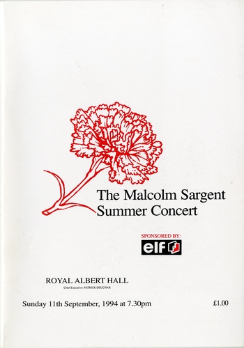 | Choirs | Malcolm Sargent Festival Choir: Aeolian Singers (Hemel Hempstead), Blackheath Male Voice Choir, Bromley Philharmonic Choir, Chorleywood Choral Society, City Philharmonic Choral Society, Crayford Manor House Choir, Hanover Choir, Harrow Choral Society, Harrow Philharmonic Choir, Hillingdon Choral Society, Kingston Choral Society, Malcolm Sargent Festival Chorus, Manchester Hospitals Choir, Middlesex Bach Choir, Norwood Green Choral Society, Nottingham Hospitals Choir, Pinner and Hatch End Operatic Society, Putney Choral Society, South Chiltern Choral Society, Southwark Singers of London, Stanmore Choral Society, Teddington Choral Society, University of Warwick Chorus, Watford Philharmonic Society, Wimbledon Choral Society, Windsor and Eton Choral Society |