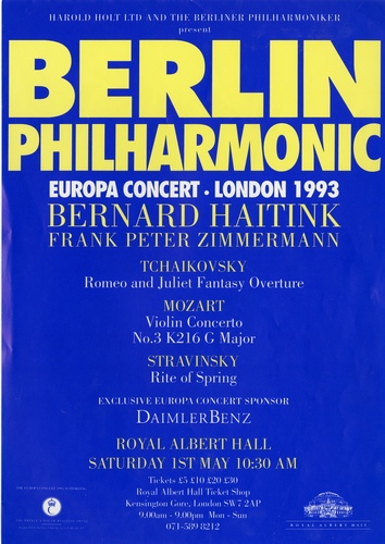 | Set List | 'Romeo and Juliet Fantasy Overture', Tchaikovsky (Berlin Philharmonic), 'Violin Concerto in G Major, K.216', Mozart (Frank Peter Zimmermann, Berlin Philharmonic), 'Le Sacre du Printemps' (The Rite of Spring), Stravinsky (Berlin Philharmonic) |