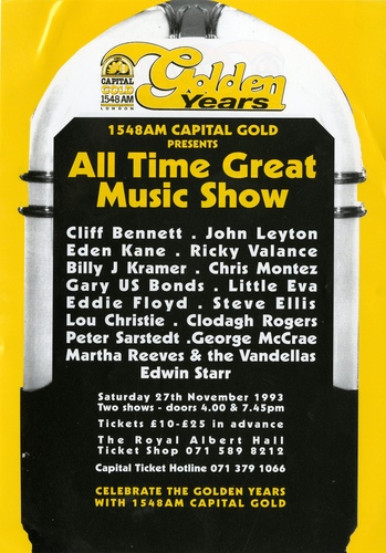 | Main Performers | Cliff Bennett, Clodagh Rodgers, John Leyton, Chris Montez, Eden Kane, Mel Carter, Ricky Valance, George McCrae, Billy J Kramer, Edwin Starr, Peter Sarstedt, Little Eva, Gary US Bonds, Eddie Floyd, Steve Ellis, Lou Christie |
