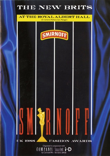 | Set List | Smirnoff European Fashion Awards - The Winners, Smirnoff Imbex Student Menswear Designer Awards, 1988 Smirnoff UK Fashion Awards - The Semi-Finalists - Urban, Ethnic, Active, Evening, Smirnoff Imbex Student Menswear Designer Award - Winning Design from Epsom College of Art and Design and a selection of runners up from Trent Polytechnic and Berkshire College of Art and Design, Then Jerico, Finalists - 1988 Smirnoff UK Fashion Awards, Awarding Prizes |
