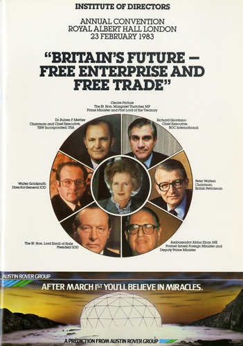 | Main Performers | Mr Peter Walters (Chaiman, BP), Mr Richard Giordano (CEO, BOC Group), Ambassador Abba Eban, Rt. Hon. Lord Erroll of Hale, Mr Walter Goldsmith, Dr Ruben Mettler, Prime Minister, The Rt. Hon. Margaret Thatcher - speakers |