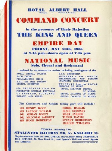 | Set List | 'Fanfares', Major Adkins, Sir Granville Bantock (Royal Military School Of Music Trumpeters), Royal Entrance - 'God Save The King' (The National Anthem), Air: 'Fairest Isle, All Isles Excelling', Purcell, score Dame Ethel Smyth (Isobel Baillie), 'Sumer is Icumen In', (New English Singers, English Singers Quartet), 'Agincourt Song' (New English Singers, English Singers Quartet), 'Now Is The Month Of Maying', Morley (New English Singers, English Singers Quartet), 'Soul Of The World', Purcell (New English Singers, English Singers Quartet), 'Where The Bee Sucks', Arne, score Sir Frederic Cowen, Elsie Suddaby), 'Great God of Love', Pearsall (New English Singers, English Singers Quartet), Overture: 'Yeoman of The Guard', Sullivan, Scotch Songs 'Old 124th' (Stuart Robertson, Glasgow Orpheus Choir), 'The Isle of Mull', arr. Roberton (Stuart Robertson, Glasgow Orpheus Choir), 'The Road To The Isles' (Stuart Robertson, Glasgow Orpheus Choir), 'Hugh's Song Of The Road', Vaughan Williams (Tudor Davies), Part Song: 'Non Nobis, Domine', Quilter, 'Fanfare', Arnold Bax, 'O Peaceful England', German (Mary Jarred), Welsh Songs - 'Caerllyngoed', S Llwyd, 'The Rising of The Lark', score Dr. David De Lloyd, 'New Year's Eve', arr. Clements, Two Movts - 'Nursery Suite', Edward Elgar, 'Busyness', 'The Waggon Passes', Adagio - 'Nimrod' (Enigma Variations), Edward Elgar, Part Song - 'Heraclitus', Stanford, Irish Air - 'My Love's An Arbutus', arr. Stanford, The Planets: 'Jupiter', Holst, English Songs: 'The Jolly Carter', arr. Moeran, 'Full Fathom Five', Charles Wood, 'Spanish Ladies', arr. Cecil Sharp, Royal request - 'Jerusalem' Festival Song - 'England', Parry, score Gordon Jacob, 'God Save the King' (The National Anthem) |