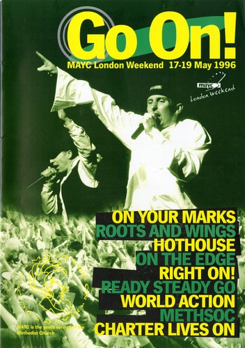 | Set List | Roots and Wings, Opening (Tony Banner, Debbie Bentley, Laura Blumenthal, Blue Bramley, Claire Cogan, Ann Cunningham, Simon Imrie, Steve Johnson, Candice Joyce, Lindsey Stewart, Linda Taylor, Jonathan Todd, plus The Cast), Netball Finals (Barrow on Humber versus The Ecumenical Centre, Skelmersdale), Table Tennis Finals: Male Ian Howell Alistair Wilding, Female Emma Roberson Samantha Chalmers, Mixed Doubles James Fisher and Karen Beesley, Mike Bell and Anne Holmes, MAYC Orchestra and Singers INTERVAL Frankenstein's Valentine (Immingham Trinity, Beaconthorpe and Brigg Youth Groups), Everyone's a Winner (Leicester Trinity Circuit and Mount Sorrel Church), Wonderful World (Court Hey, Kensington and Stoney-Croft Youth Groups), Out of Love for All People - A Moving call to action from the Guarani Indians in Brazil, Drat Drat and Double Drat (Haworth Road Fellowship Bradford), Wings to Fly (The Dd-Do Decas - young people from the Biggleswade, Cambridge and Hounslow Circuits), Get Your Fax Right (Time and Place Chislehurst Circuit Groups), The Roots of Music (Coventry United), The Puerto Rican (Southampton Circuit Groups), Finale (The Cast) |