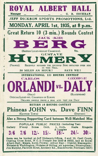 | Main Performers | Jack (Kid) Berg, Gustave Humery, Carlos Orlandi, George Daly, Phineas John, Dave Finn, Pat Marrinan, Albert Inwards, Bob Eggleton, Jack Millburn, Arthur Smith, Jackie Rankin, Boy Dixie, Jimmy Page, Reg Milligan, Young Fraser - boxers |