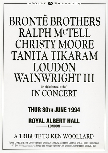 'A Tribute to Ken Woollard' with the Bronte Brothers, Ralph McTell, Christy Moore, Tanita Tikaram and Loudon Wainwright III