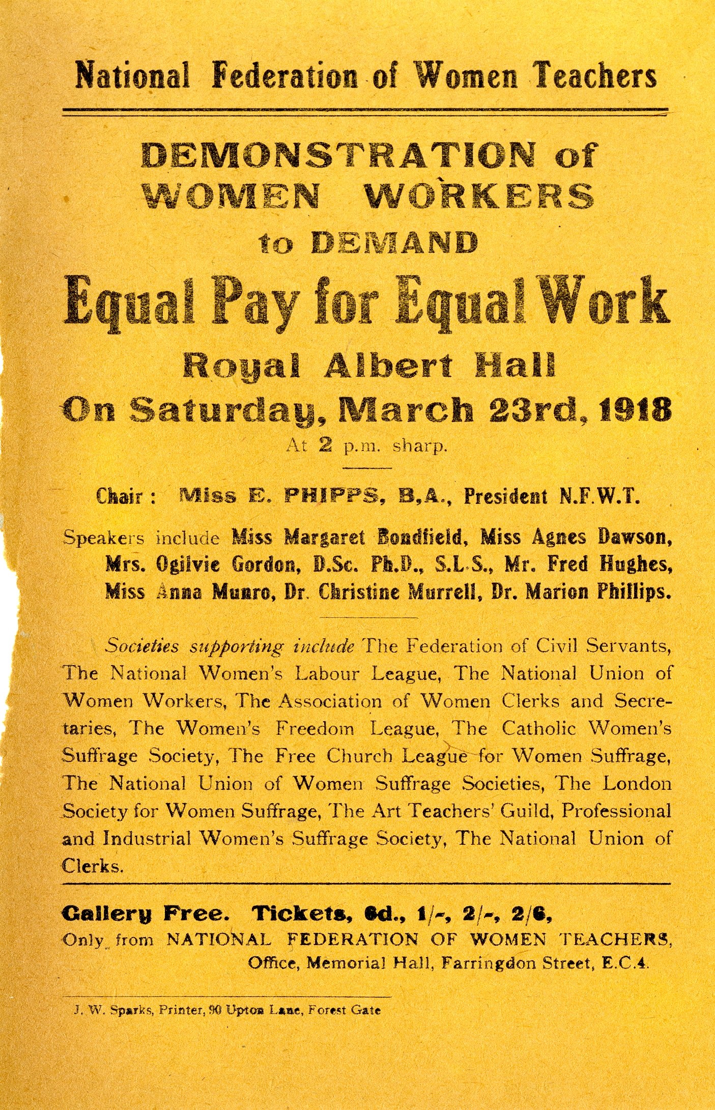 Tickets only available from the National Federation of Women Teachers, Memorial Hall, Farringdon, EC4. |