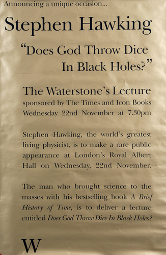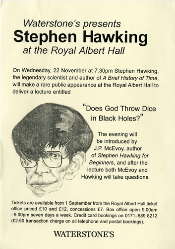 | Performance Notes | In 1995 Professor Stephen Hawking became the second Physicist ever to sell out the Royal Albert Hall. The first Physicist had been Professor Albert Einstein in 1933, on his way through England after being forced to flee Germany by anti-Jewish laws.