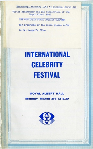 | Main Performers | Ukrainian State Cossack Company, Margot Fonteyn - dancer, Yehudi Menuhin - violin, Eileen Joyce - piano Michael Somes, Ian Hunter |