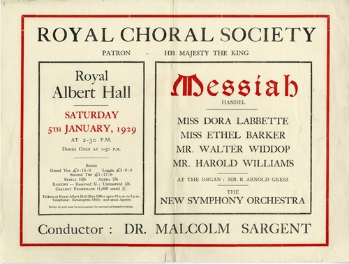 Royal Choral Society (Fifty-Eighth Season 1928-1929) - Handel's 'Messiah'
