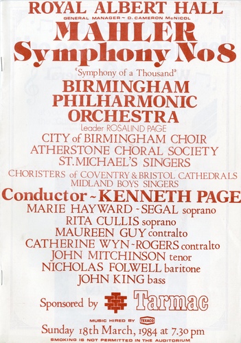 | Set List | 'Symphony No. 8 in E Flat Major', Mahler |
