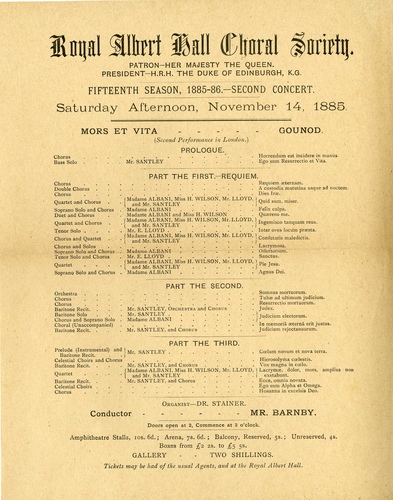 Royal Albert Hall Choral Society (Fifteenth Season 1885-1886) - Gonoud's 'Mors et Vita'