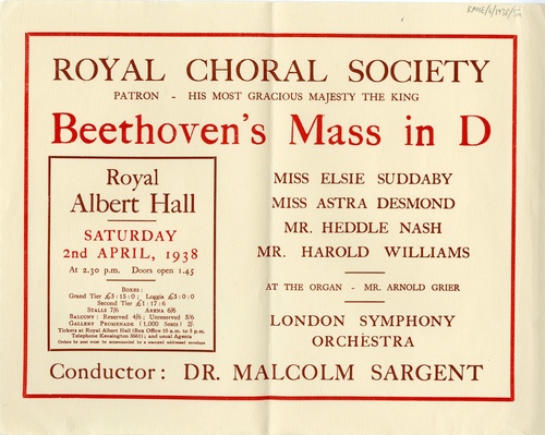 | Set List | National Anthem: 'God Save the King' 'Violin Concerto', Beethoven (Antonio Brosa) 'Mass in D', Beethoven |
