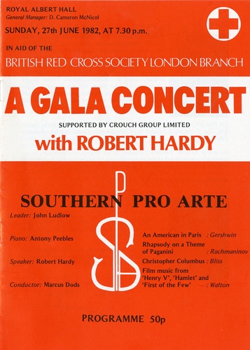 | Set List | 'An American in Paris', Gershwin (Southern Pro Arte), 'Rhapsody on a Theme of Paganini', Rachmaninoff (Antony Peebles, Southern Pro Arte) INTERVAL 'Christopher Columbus Suite', Bliss (Southern Pro Arte), Film Music:'Hamlet', Walton (Southern Pro Arte), 'Henry V', Walton (Southern Pro Arte), 'The First of the Few', Walton (Southern Pro Arte) |