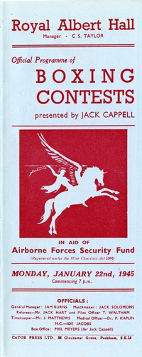 | Main Performers | Claude Dennington (British Army), Billy Walker (Newcastle), Dave Finn (Aldgate), Dave Crowley (Clerkenwell), Alf Brown (Catford), Charlie Bundy (Wales), Lefty Flynn (Jamaica), Vince Hawkins (Eastleigh), Bob Ramsey (Stepney), Jackie Rankin (Southall), PO Tim Mahoney (Royal Navy), Jack Evans (Wales) - boxers |