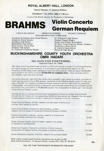 | Set List | 'Violin Concerto in D', Brahms (Vanya Milanova, Buckinghamshire County Youth Orchestra), INTERVAL 'German Requiem', Brahms, (Wendy Eathorne, Stuart Fordyce, Buckinghamshire Choir of 800 Voices, Buckinghamshire County Youth Orchestra) |