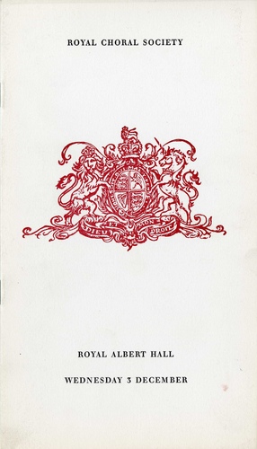 | Set List | 'God Save the Queen' (The National Anthem), 'Mass in C Major', Beethoven (Sally Le Sage, Marjorie Biggar, Alexander Oliver, Rodney Macann, Royal Choral Society, Royal Choral Society Orchestra), 'Zadoc The Priest', Handel (Royal Choral Society, Royal Choral Society Orchestra), 'The Bells', Rachmaninoff (Royal Choral Society Orchestra) |